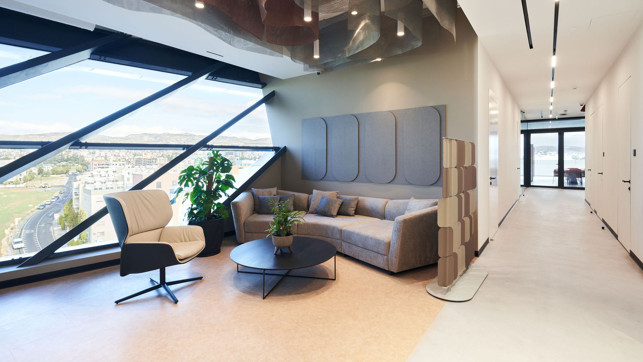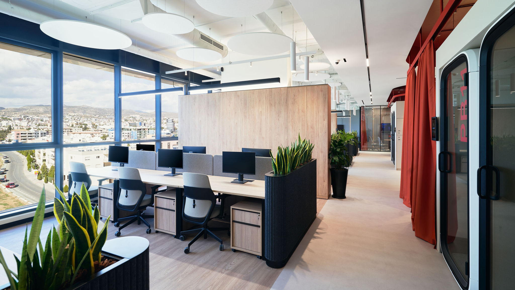 Wolax Interiors London, working alongside ZIKZAK Architects, delivered a comprehensive furniture solution for a 2,100 m² IT office in Limassol, Cyprus. The project included custom furniture for all key areas, from workstations and conference rooms to kitchens, lounge zones, and print and coffee stations.
