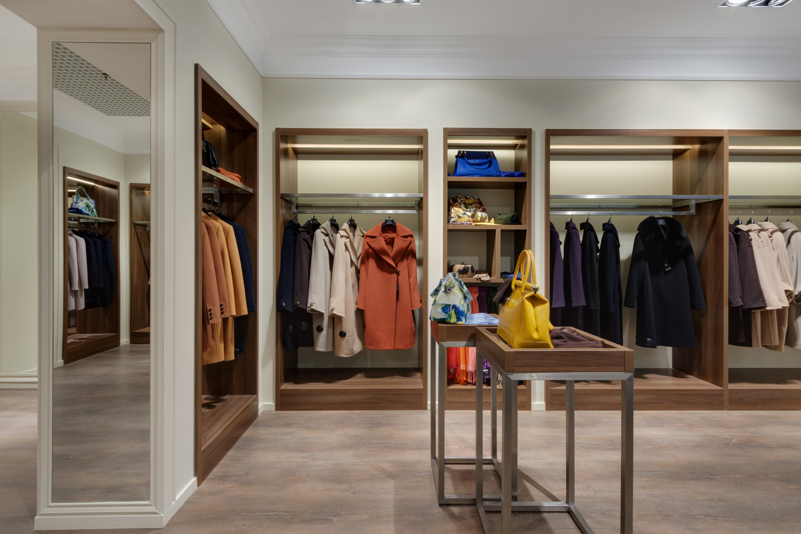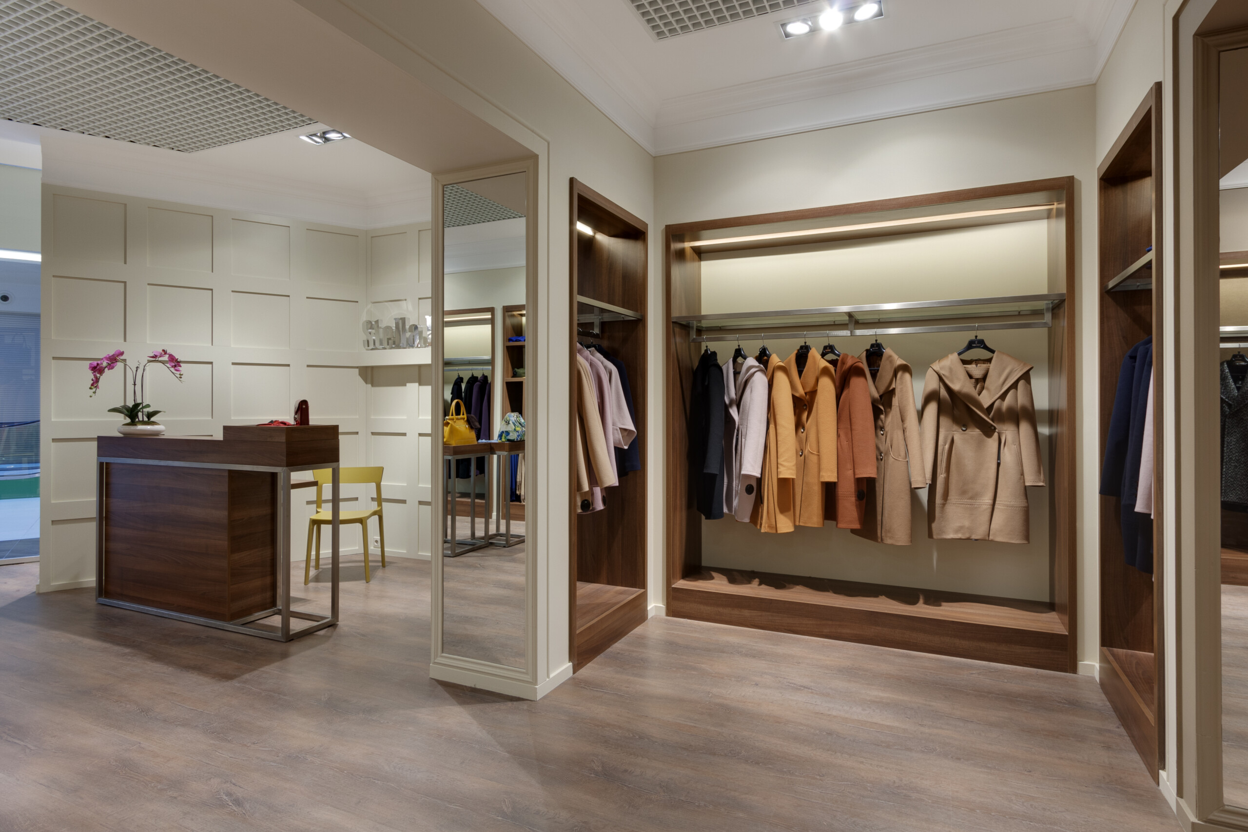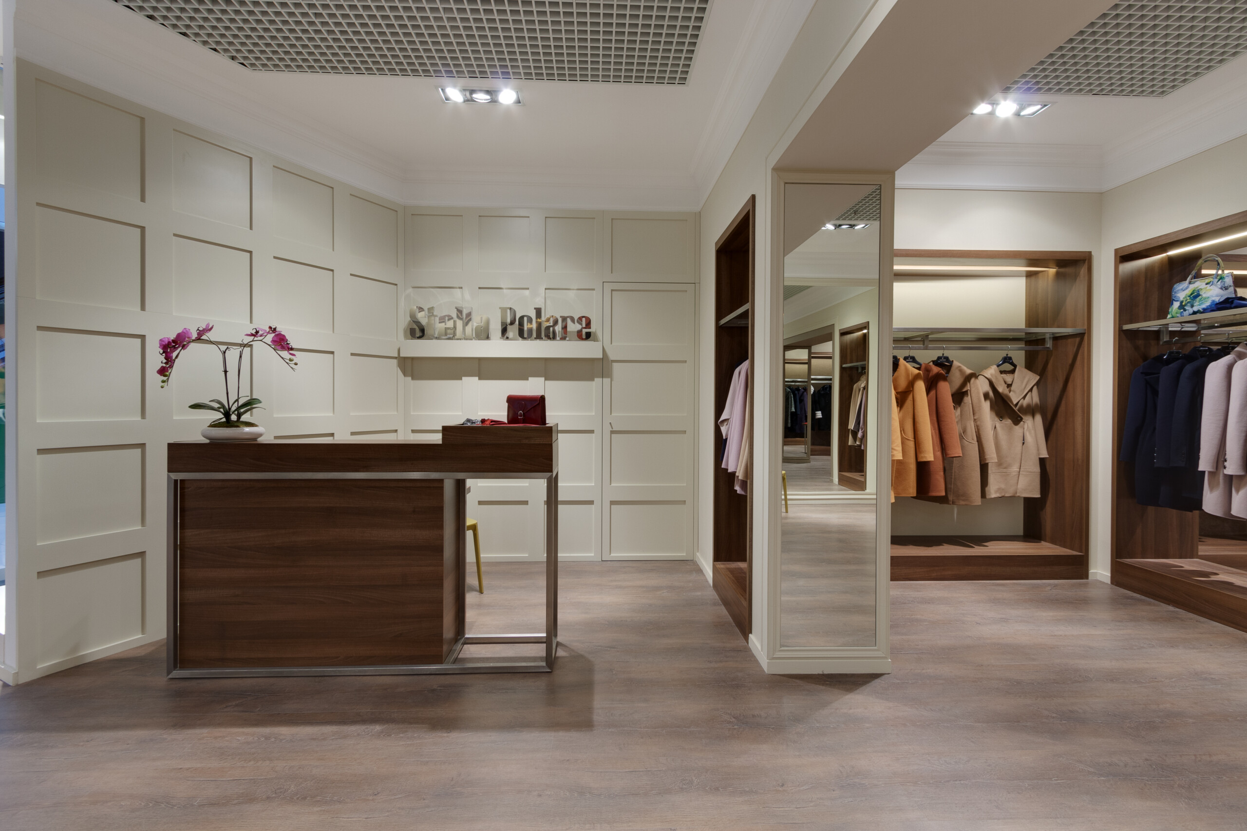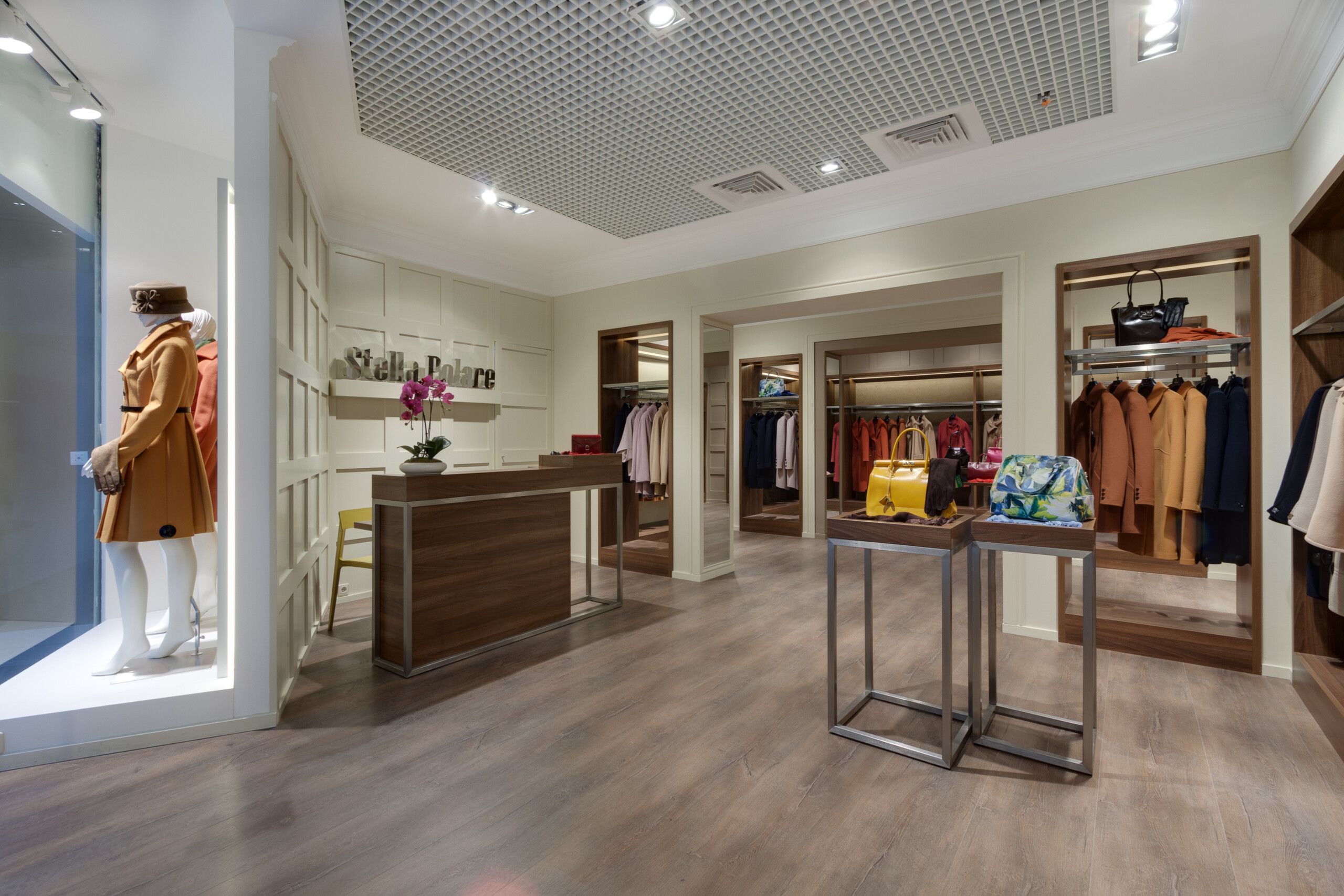 Wolax Interiors London expertly delivered the Stella Polare store project in the Silver Breeze shopping centre, transforming 200 m² into a sophisticated and highly functional retail environment. For this project, we produced and installed Stella Polare retail equipment, including display cases, counters, and bespoke space-organisation solutions, ensuring each element reflected the brand’s premium identity. Stella Polare, a renowned Ukrainian label specialising in high-quality women’s outerwear and accessories, relied on our experience and technical expertise to bring their vision to life. Throughout the project, our team carefully followed the brand book guidelines to harmonise elegance, practicality, and an elevated customer experience across the store.