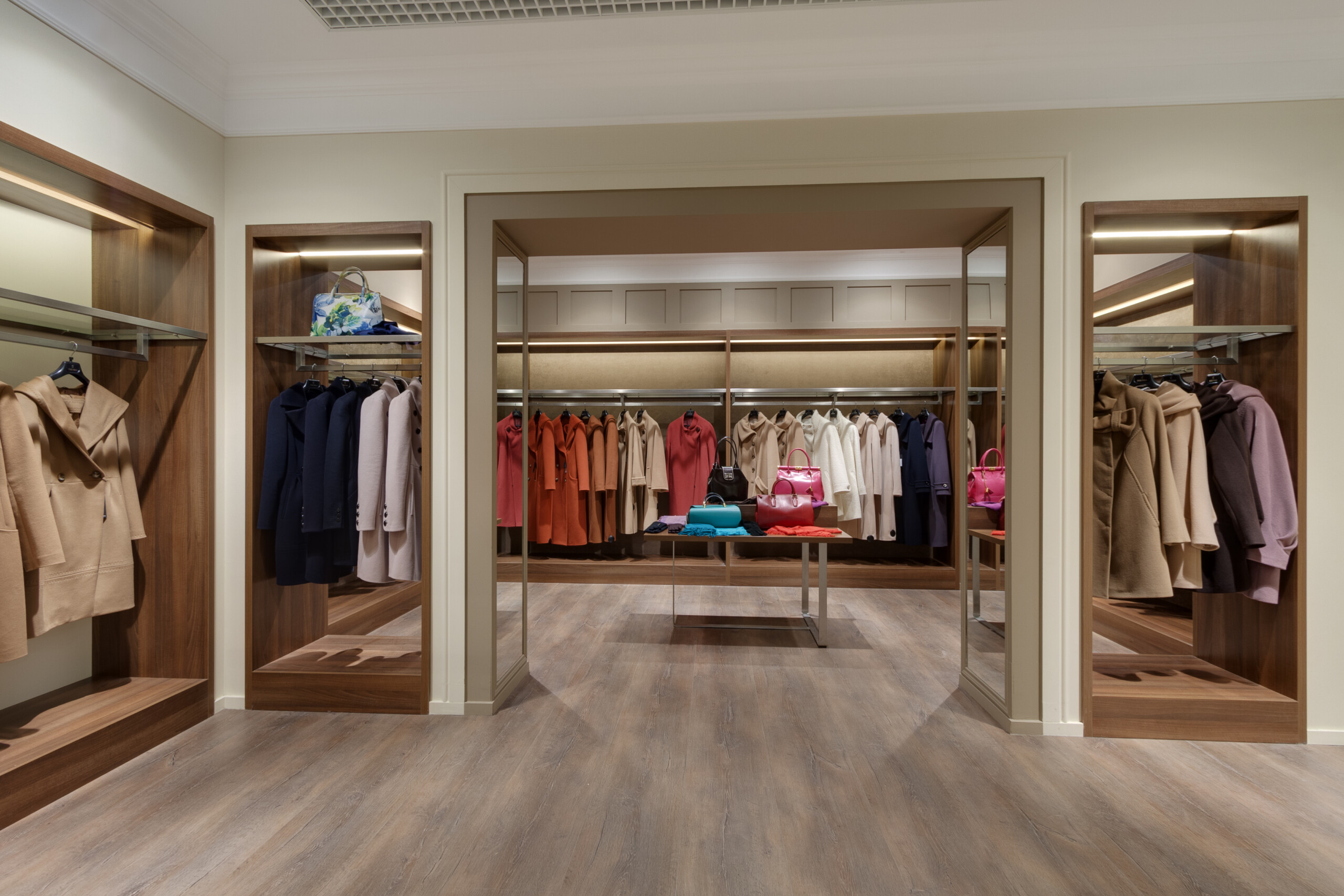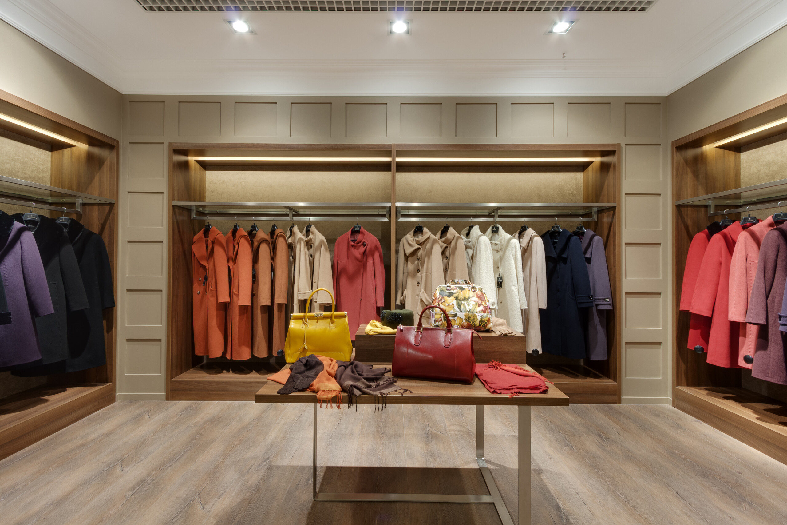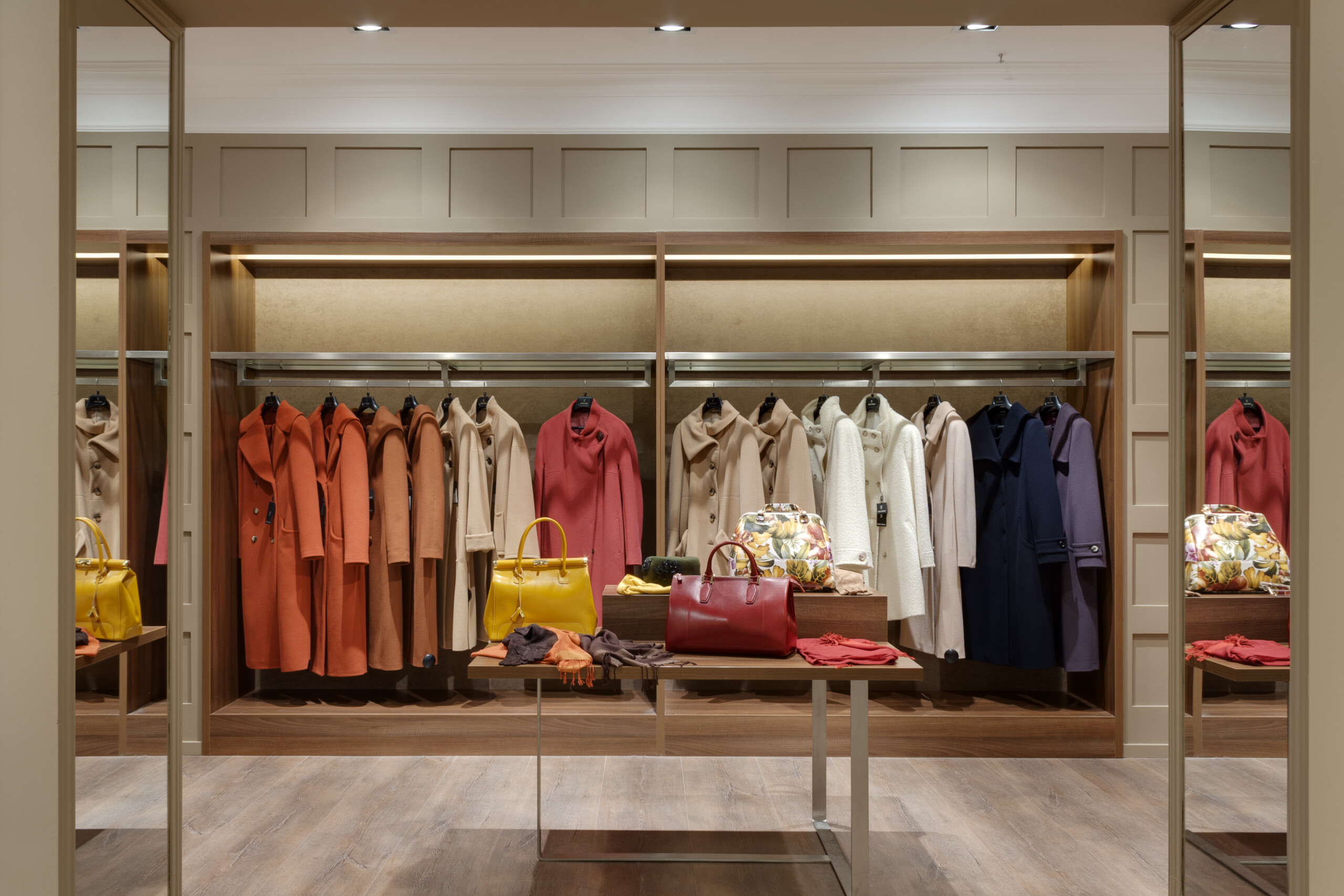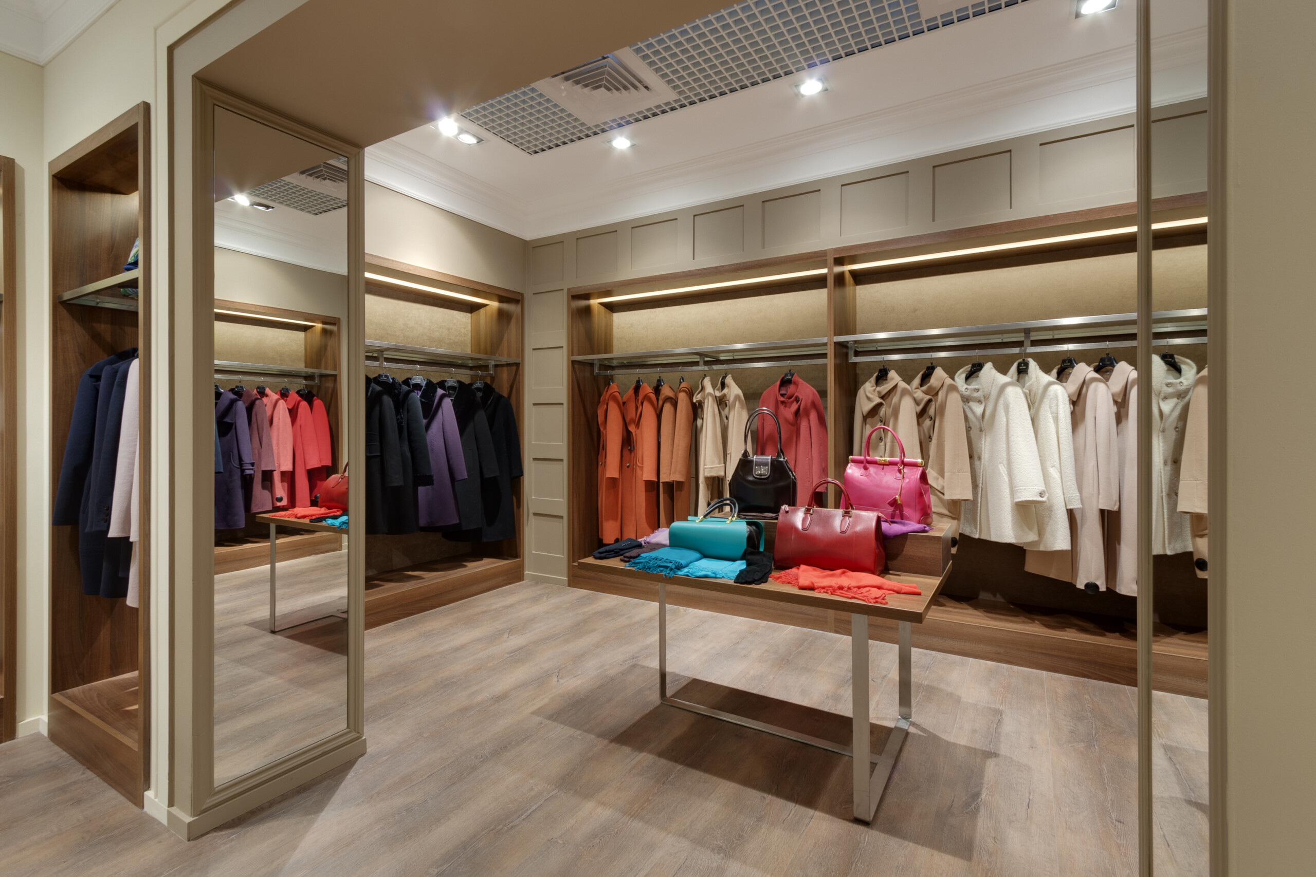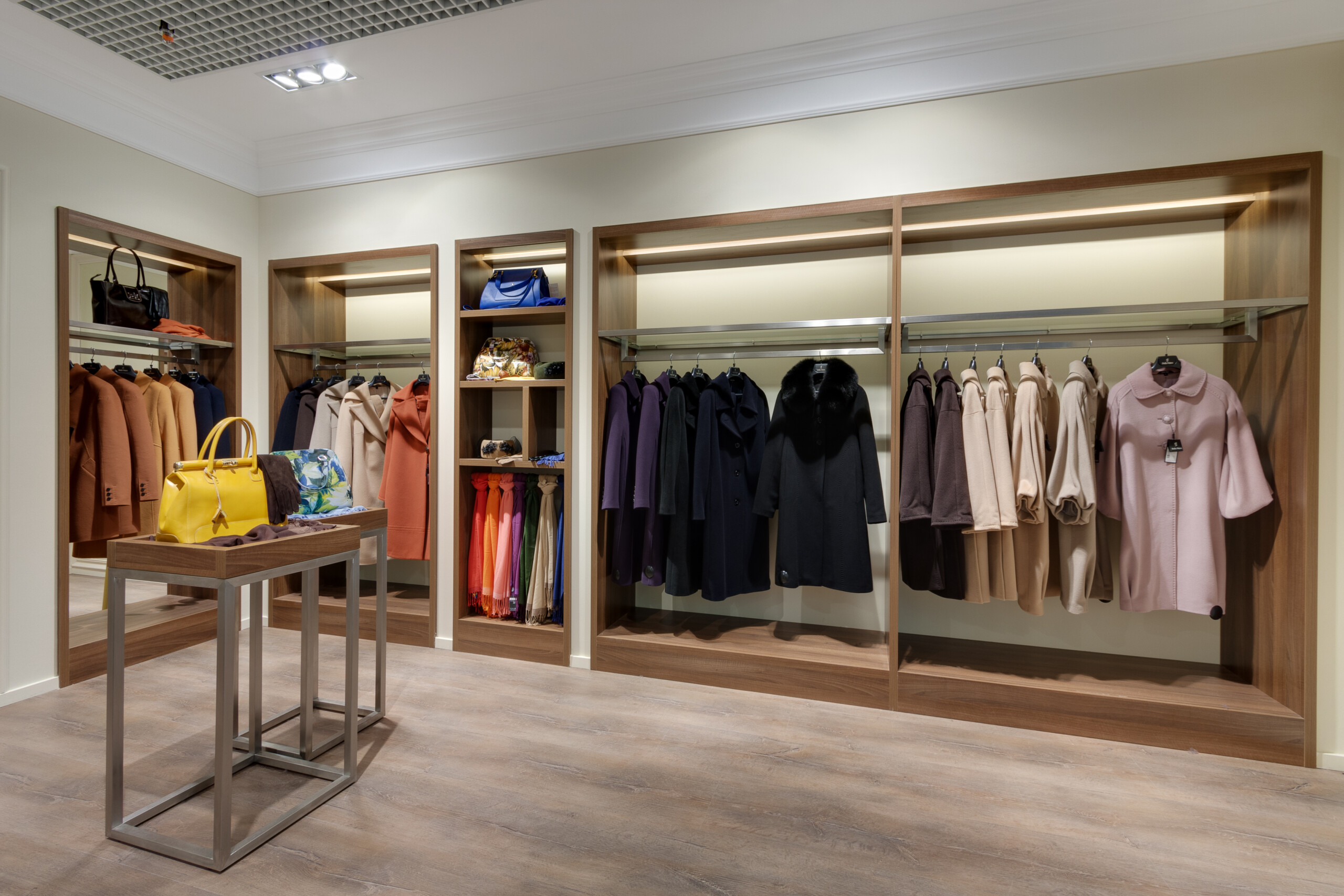 Wolax Interiors London expertly delivered the Stella Polare store project in the Silver Breeze shopping centre, transforming 200 m² into a sophisticated and highly functional retail environment. For this project, we produced and installed Stella Polare retail equipment, including display cases, counters, and bespoke space-organisation solutions, ensuring each element reflected the brand’s premium identity. Stella Polare, a renowned Ukrainian label specialising in high-quality women’s outerwear and accessories, relied on our experience and technical expertise to bring their vision to life. Throughout the project, our team carefully followed the brand book guidelines to harmonise elegance, practicality, and an elevated customer experience across the store.