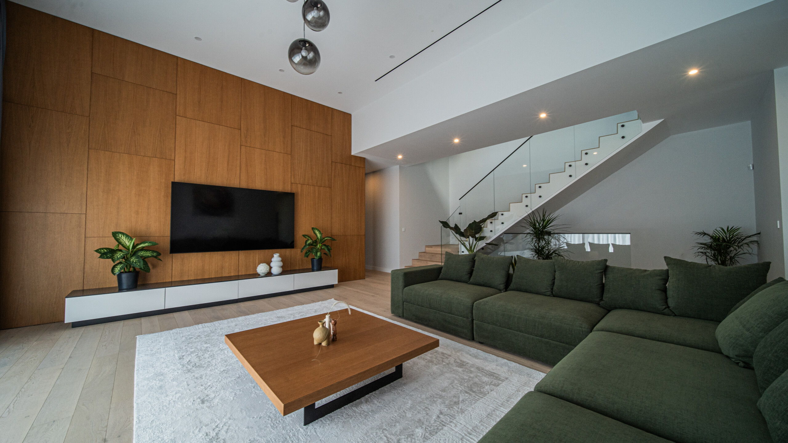 Material selection was central to achieving the right balance between style and durability. Veneered MDF and chipboard were used for core structures, supporting precision, stability, and a flawless finish across built-in elements. Metal components were integrated for structural strength, particularly in larger pieces, while glass and engineered stone were applied to surfaces and decorative details to enhance durability and visual contrast. Combined with expert craftsmanship, these materials create interiors that are sophisticated, contemporary, and built to stand the test of time.